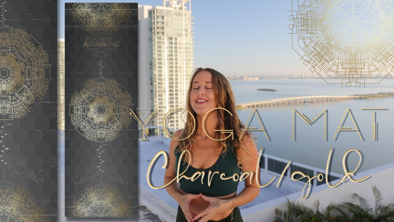the Ecstatic Awakening Yoga Mat in charcoal & gold